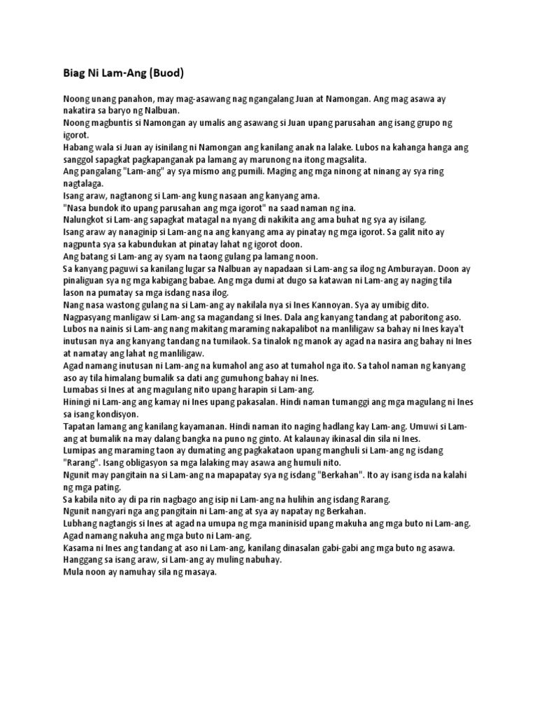 Dec 03 2020 Biag ni Lam-ang I. Recited and written in the. Ipinagbilin ni Lam-ang ang dapat gawin sakaling mangyayari ito.