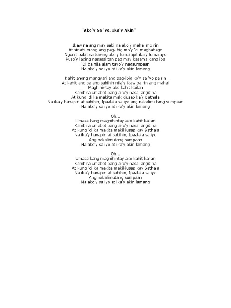 Na akoy sa yo at ikay akin lamang. AKOY SA IYO IKAY AKIN By. At kung di ka nakita makikiusap kay Bathala.