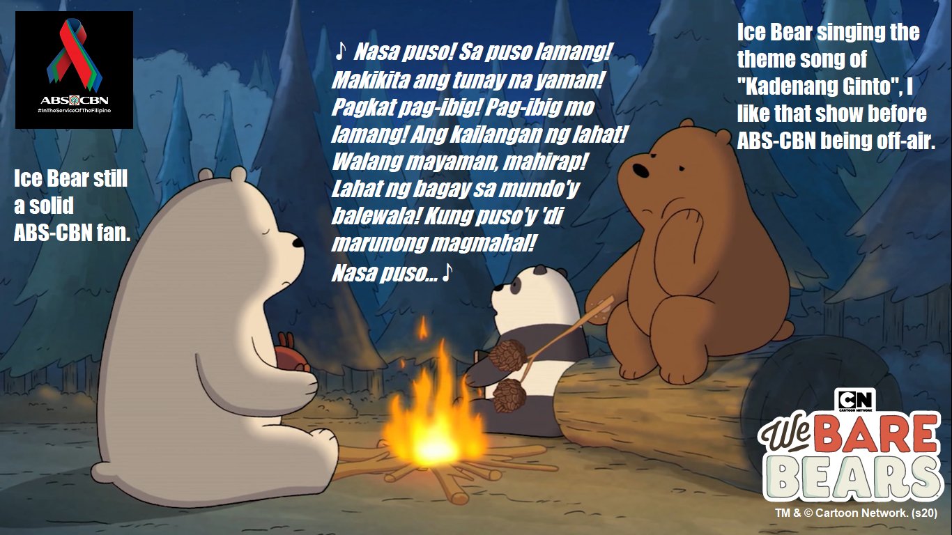 Terah Bytes Francisco On Twitter We Bare Bears Characters Remembering Abs Cbn Since Its Was Signed Off On May 5 2020 And Panda Singing Nasa Puso From Kadenang Ginto Notoabscbnshutdown Saveabscbn Webarebears Familyisforever